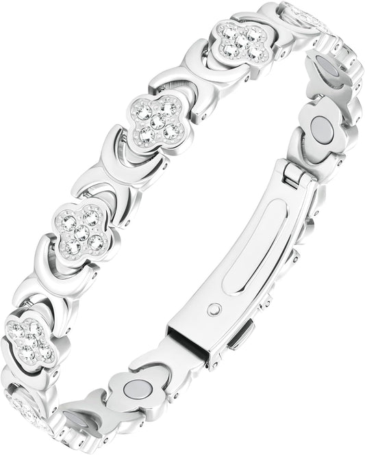 Pure Copper Bracelet for Women, Super Strong Magnetic Therapy Pain Relief Bracelet with 3800 Gauss Magnets and Sparkling Cubic Zirconia, Adjustable, Infinity Clover Jewelry